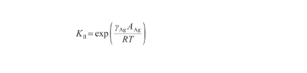 Ag-O系固-液轉(zhuǎn)變過(guò)程進(jìn)行到一定限度時(shí),系統(tǒng)達(dá)到平衡,自由能不再發(fā)生變化,且為最小。同時(shí),固態(tài)、液態(tài)中的Ag原子濃度也不再發(fā)生變化,平衡系數(shù)KI表示為: