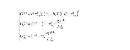 式中,GE,b表示Ag-O系的摩爾過(guò)剩自由能(J/mol),n,an和bn均為待定參數(shù),可以通過(guò)相圖計(jì)算獲得。