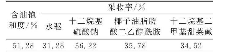 采用巖心動態驅替實驗。對復配的低界面張力表面活性劑DQ-2體系的驅油性能進行室內動態評價,并與水驅、十二烷基硫酸鈉、椰子油脂肪酸二乙醇酰胺和十二烷基二甲基甜菜堿等驅油性能進行比較,實驗結果見表1。
