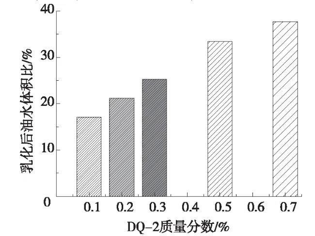 表面活性劑能促使原油和水發生乳化,從而有效地實現油水的分離,表面活性劑體系的乳化性能直接影響體系的驅油效果。在油藏溫度及礦化度條件下,試驗測定體系DQ-2對原油的乳化性能,結果見圖4。