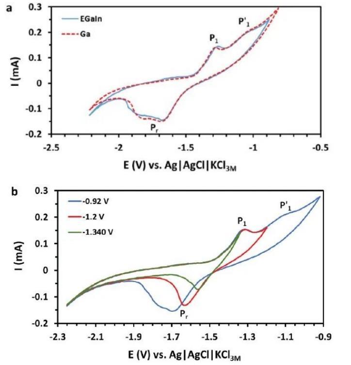 電化學氧化作用可以誘導液態(tài)金屬表面生成不同的氧化物或氫氧化物薄層,而這種表面變化對界面張力的影響非常顯著。例如,研究發(fā)現(xiàn),氧化鎵薄膜會在特定的電位下破裂并溶解,使得液態(tài)金屬的表面張力急劇下降。通過控制電化學氧化的電位,能夠在微觀層面實現(xiàn)液態(tài)金屬的“開關”效應,有望用于開發(fā)可控液態(tài)金屬元件。