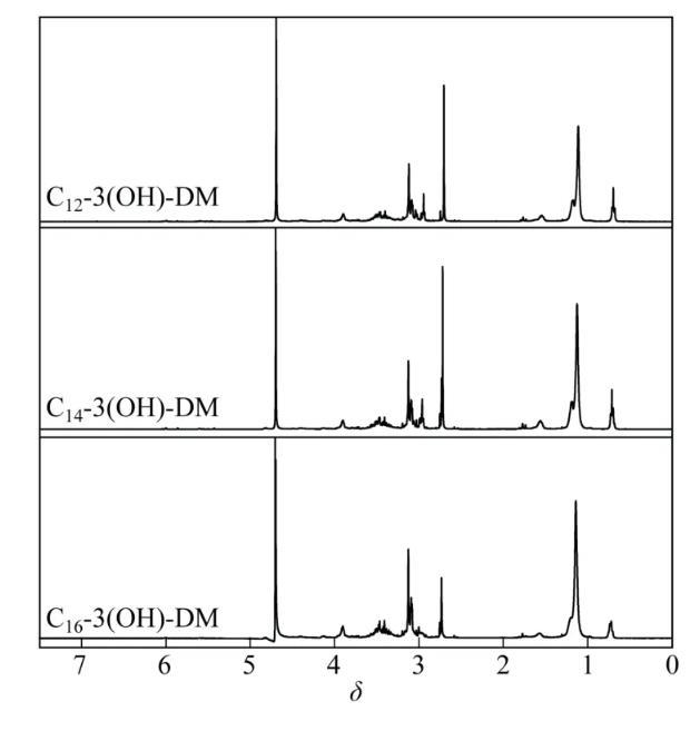 圖4 Gemini表面活性劑Cm-3(OH)-DM的核磁共振氫譜