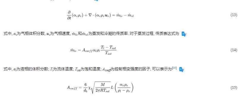 和為蒸發(fā)和冷凝的傳質(zhì)率。對于蒸發(fā)過程,傳質(zhì)表達(dá)式為