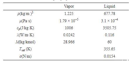 式中,db為液體蒸發(fā)時產(chǎn)生的氣泡直徑;χ表示液體表面吸附蒸氣分子的量,為調(diào)節(jié)系數(shù);M為摩爾質(zhì)量;R為通用氣體常數(shù),8.314 J/(mol·K);L為蒸發(fā)潛熱;在本文中,Acoeff取值為500.