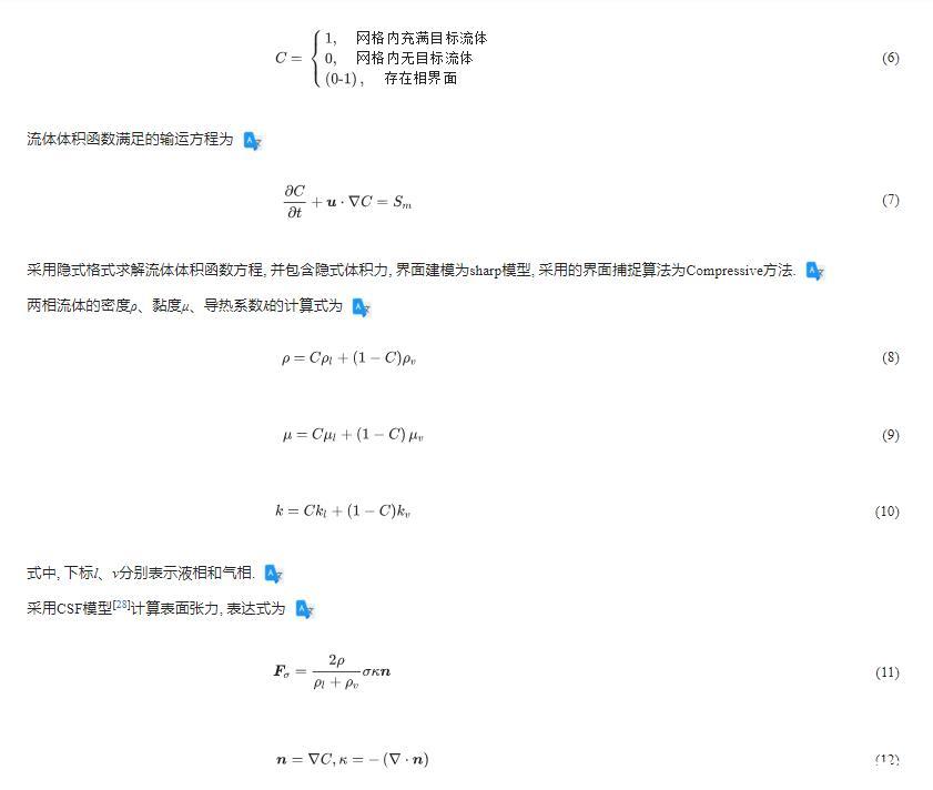 采用隱式格式求解流體體積函數(shù)方程,并包含隱式體積力,界面建模為sharp模型,采用的界面捕捉算法為Compressive方法。