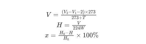 式中:V為在1個標準大氣壓、273 K的條件下生成氫氣的體積,mL;V 1為反應前堿式滴定管的讀數(shù),mL;V 2為反應后堿式滴定管的讀數(shù),mL;T為反應溫度,℃;H為反應產(chǎn)物的含氫量,10-2 mol/g;W為樣品質(zhì)量,g;x為MDHM轉(zhuǎn)化率;H 0為反應前產(chǎn)物的含氫量,10-2 mol/g。