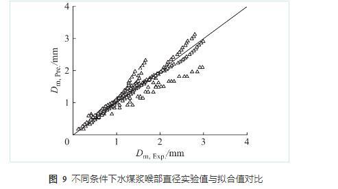 圖9不同條件下水煤漿喉部直徑實驗值與擬合值對比