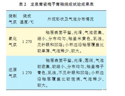 表2 龍泉青瓷梅子青釉燒成試驗(yàn)成果表