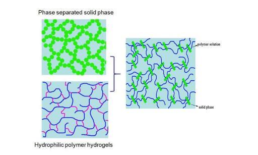 傳統的氣凝膠主要以氧化硅、氧化鋁等為主,其特征在于凝膠網絡與溶劑形成明顯的相分離區域,凝膠網絡為連續的固相。近年來廣泛報道與研究的石墨烯氣凝膠、碳納米管氣凝膠,其凝膠單元皆為不溶解的分散納米單元(如圖4所示)。而以親水性高分子交聯網絡為代表的化學水凝膠,則極少被制備成氣凝膠,原因在于并未形成固相的連續化凝膠網絡,高分子處于溶脹態,化學交聯防止其完全溶解。對于此類水凝膠,不論采用何種干燥方法,都難以維持“原網絡”結構,親水性高分子基氣凝膠的報道因此極為稀少(圖4)。理論上講,任何一種濕凝膠都能制備相應的氣凝膠,但從技術角度看,還有待長期實驗結果的驗證。