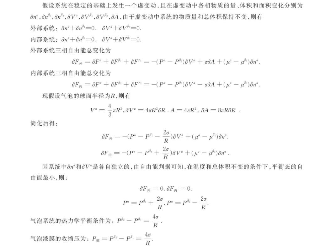 根據(jù)穩(wěn)定氣泡的熱力學(xué)平衡條件可知,氣泡的液體表面張力系數(shù)為:0