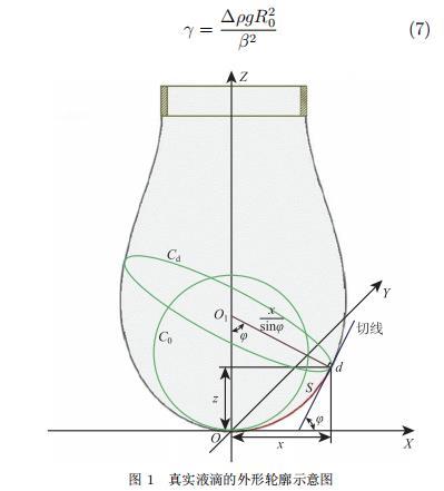 式中,?p? 為參考點 O 處的液滴分界面處的內外壓力差;?p_d 為液滴表面 d 點處的液滴分界面處的內外壓力差;?ρ 為氣液兩相的密度差;g 為當地重力加速度,取值為 9.7967 m·s?2;k?、k_L 和 k_d 分別為參考點 O 處的曲率、d 點在 Z ? X 坐標平面的曲率以及 d 點在 Z ? X 正交平面的曲率,其值分別為 k? = 1/R?,k_L = dφ/ds 和 k_d = sinφ/x。