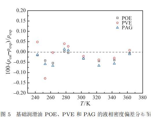 圖 5 基礎(chǔ)潤滑油 POE、PVE 和 PAG 的液相密度偏差分布圖