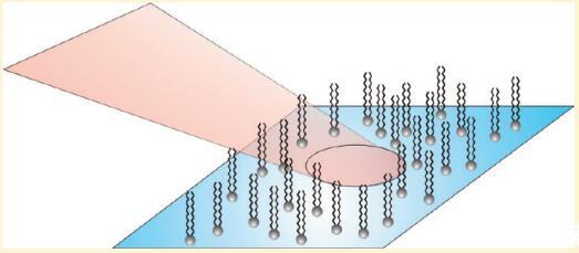 在過去的幾十年中,紅外-可見和頻發(fā)生(SFG)已被證明是研究水相表面活性劑的極好工具。1.?9在該技術(shù)中,紅外激光束與可見激光束在感興趣的界面處組合,并檢測兩者的和頻光束。在中心對(duì)稱介質(zhì)中,信號(hào)的產(chǎn)生通常是被禁止的,因此對(duì)界面上分子的存在非常敏感。如果紅外激光與界面分子的振動(dòng)躍遷共振,則SFG強(qiáng)度增強(qiáng),從而可以測量界面分子的振動(dòng)光譜。SFG光譜的形狀包含有關(guān)表面活性劑的分子構(gòu)象和方向的信息。大多數(shù)研究都集中在高密度單分子膜上,盡管在低密度下有令人驚訝的觀察報(bào)告。我們中的一些人(Roke等人4)以前曾報(bào)告過C?H不溶性表面活性劑DPPC(1,2-二棕櫚酰-sn-甘油-3-磷酸膽堿;見圖1)在水上的拉伸模式,密度約為100?2/分子,密度間隔小于1?2/分子,這歸因于脂質(zhì)尾部的卷曲和未卷曲。最近,Chen等人9報(bào)告了DPPC在水和含有低二甲基亞砜摩爾分?jǐn)?shù)的水上的CH信號(hào)在該密度附近的類似行為。此外,他們報(bào)告說,來自DPPC頭部總成的P=O振動(dòng)信號(hào)僅在CH信號(hào)存在時(shí)出現(xiàn)。他們將CH信號(hào)的缺失/存在歸因于DPPC分子的無序/有序尾部。P=O信號(hào)的缺失可通過頭部大的取向分布來解釋。