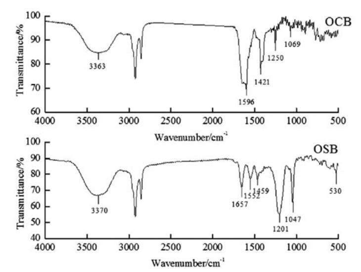 OSB:IR:3370 cm-1(N-H)、1657 cm-1(C=O)、1552 cm-1(N-H)、1459 cm-1(酰胺鍵中的C-N)、1047 cm-1(季銨基中的C-N)、1201 cm-1和530 cm-1(-SO3-)。ESI-MS:m/z=491.3,489.2分別歸因于由油酸甘油酯(C18:1)和亞油酸甘油酯(C18:2)與H+衍生的羧基甜菜堿;m/z=487.2、485.3、515.1、513.1、511.2分別與從棕櫚酸甘油酯(C16)、棕櫚烯酸(C16:1)、硬脂酸甘油酯(C18)、油酸甘油酯(C18:1)和亞油酸甘油酯(C18:2)中提取的含Na+的羧基甜菜堿相匹配。