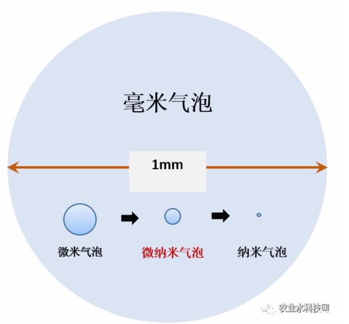 通常我們把氣體在液體中的存在現象稱作氣泡。氣泡的形成現象,在自然界中的許多過程中都能遇到,當氣體在液體中受到剪切力的作用時就會形成大小、形狀各不相同的氣泡。目前,對氣泡的分類與定義并不是十分嚴格,按照從大到小的順序可分為厘米氣泡(CMB)、毫米氣泡(MMB)、微米氣泡(MB)、微納米氣泡(MNB)、納米氣泡(NB)。所謂的微納米氣泡,指在發生時,直徑在1-50微米的氣泡為微米氣泡,直徑1微米以下的氣泡為納米級氣泡,兩者統稱為微納米氣泡。在水中通常外觀表現為乳白色。
