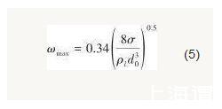 當(dāng)含表面活性劑射流離開噴嘴后,其表面會(huì)形成不穩(wěn)定波。射流表面不穩(wěn)定波隨著射流的前進(jìn)不斷發(fā)展并最終導(dǎo)致了液體射流的破裂。從圖5中可以看出,實(shí)驗(yàn)工況下,射流表面波動(dòng)為正對(duì)稱波;從圖6中可以看出,射流破裂長(zhǎng)度隨著液體射流速度的增大而增大。因此,可以認(rèn)為在實(shí)驗(yàn)工況下,含表面活性劑射流處于Rayleigh模式。在此射流破裂模式下,射流表面最不穩(wěn)定波的增長(zhǎng)率可以表示為[18]: