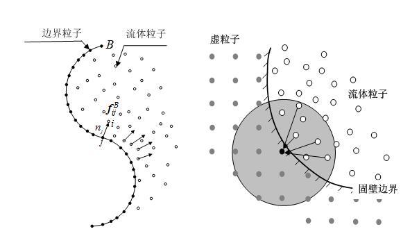 罰函數方法示意圖(左)和虛粒子方法示意圖(右)