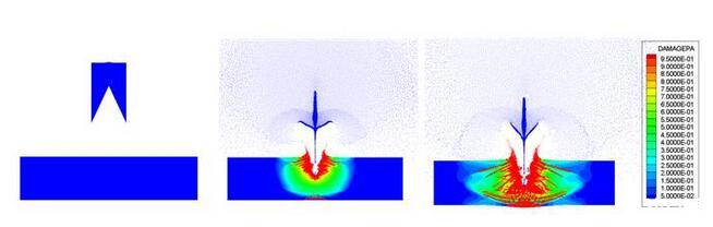 平頭鋼彈正沖擊鋼板SPH-FEM耦合方法計算結果(左)和實驗結果[50](右)對比