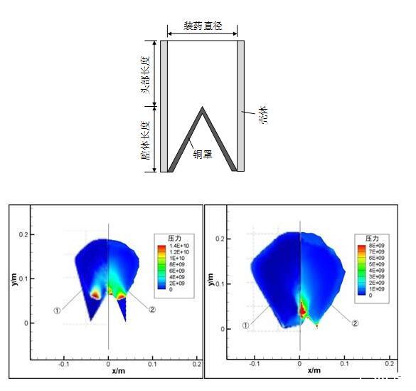 ①和②分別表示傳統方法和完全變光滑長度SPH方法模擬的結果