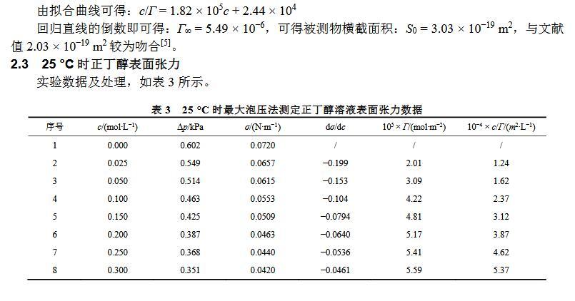 【摘要】:最大氣泡壓力法測定溶液表面張力是物理化學實驗中的一個傳統實驗,由于各種因素的影響,導致學生實驗結果存在較大偏差。本研究通過濃度、溫度等作為變量進行實驗條件探索而得到的結果與文獻值較為吻合。