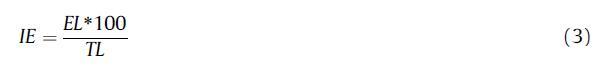 拉伸強(qiáng)度(TS)和斷裂伸長率(%E)使用智利官方標(biāo)準(zhǔn)方法(NCh1151,1999)測定,該方法等效于ISO R1184-1970標(biāo)準(zhǔn)方法。薄膜樣品被切成10毫米?50毫米的條帶,并使用雙夾鉗以30毫米的間隔以20毫米/分鐘的測試速度進(jìn)行測試。記錄曲線載荷與伸長的關(guān)系,直到達(dá)到斷裂伸長率。TS以MPa表示,并通過將最大載荷(N)除以橫截面積(m2)計算得出。最大斷裂伸長率或%E是通過將斷裂時的伸長率除以樣品的初始標(biāo)距并乘以100來確定的。報告的TS和%E值是對每種類型的樣品進(jìn)行的至少四次測量的平均值電影。